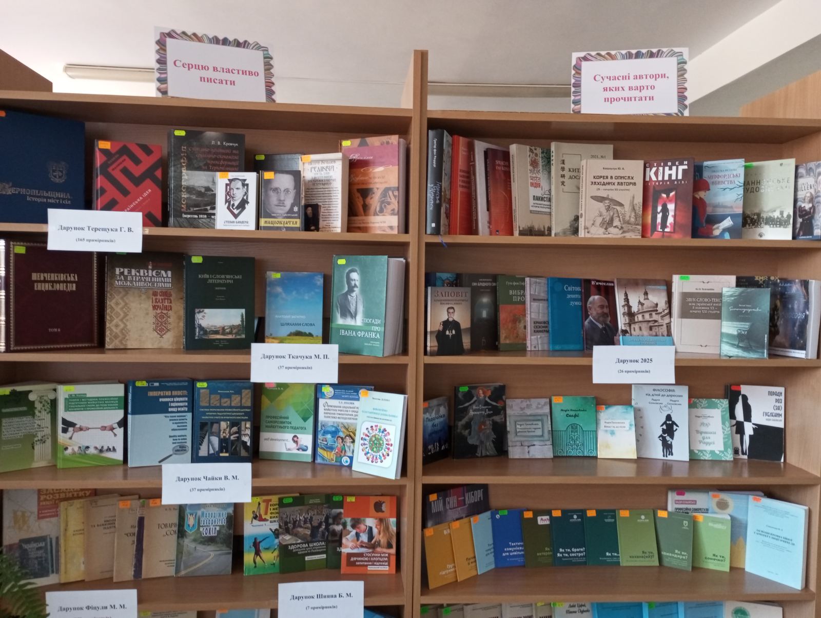 Працівники читального залу підготували виставки книг, подарованих бібліотеці: «Сучасні автори, яких варто прочитати», «Серцю властиво писати», де експоновано видання наших найактивніших дарувальників.