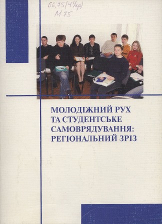 Молодіжний рух та студентське самоврядування: регіональний зріз / ред.-упоряд.: Л. Кудіна, Н. Демчук, О. Кузьмич. – К. : Молодіжна альтернатива, 2007. – 80 с. У книзі досліджено особливості молодіжного руху та студентського самоврядування в Криму, Чернівцях, на Тернопільщині, Запоріжжі та інших регіонах України. |