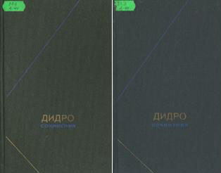 Дидро, Д. Избранные произведения / Д. Дидро ; под общ. ред. А. А. Смирнова. – М. ; Л. : Худ. лит., 1951. – 412 с. В книзі зібрані різнопланові твори Дідро: романи і оповідання: «Монахиня», «Племянник Рамо», «Два друга из Бурбонны», «Это не сказка»; драматургія і теорія драми: «Отец семейства», «О драматической литературе», «Хорош он или дурен?»; філософські твори; статті з «Энциклопедии». |