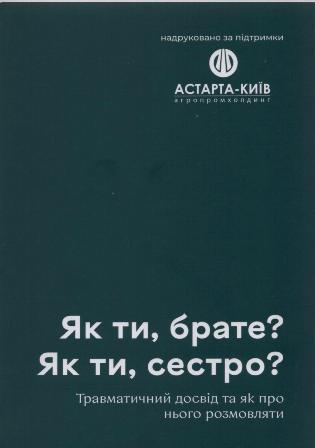 Як ти, брате? Як ти, сестро? : Травматичний досвід та як про нього розмовляти. – вид. 10-те. – [Б. м] : Український газетний синдикат, [20?]. – 37 с. – (Посібники «зеленої» серії). Цей посібник не є збіркою експертних порад – це збірка та узагальнення суто сучасного українського практичного досвіду. Ми дуже вдячні всім українцям – людям, які тримаються, борються, справляються і намагаються підтримувати одне одного. Поки ми є одне в одного, ми непереможні та незламні. |
